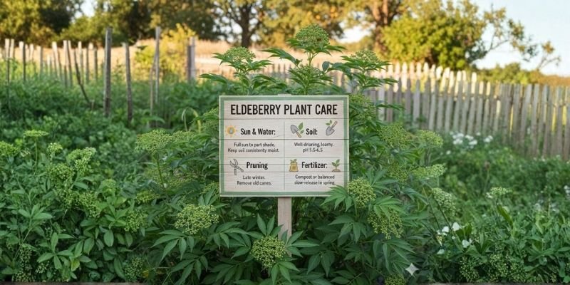 Watering is very important, especially in the first year when the elderberry plant is growing its roots. I water deeply once a week, soaking the soil to about 12 inches, but let it dry slightly between sessions to encourage deep roots. During dry spells, water twice a week instead of once a week, but always check the soil with your finger first. Too much water can drown the roots. Mulch also helps by keeping water in the soil and keeping weeds down. One summer, regular watering turned a sickly elderberry plant into a berry powerhouse by the next season.